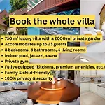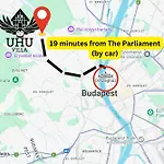 Uhu Villa 750 M2 - Budapesta cu 8 dormitoare este situat la doar 5 minute de mers pe jos de Arpad lookout și oferă confort precum Wi-Fi și parcare privată gratuită. Situată la aproape 6 km de Bastionul Pescarilor din Budapesta, vila are o terasă cu vedere la grădină.